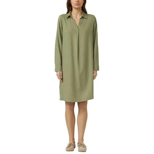 Deze korte linnenmix jurk van s.Oliver is een luchtige basic voor zonnige dagen, met een relaxed fit die prettig om het lichaam valt. De kakigroene kleur geeft een rustige, moderne uitstraling en laat zich makkelijk combineren met je favoriete sandalen of sneakers. De linnenmix van 52% linnen en 48% viscose voelt soepel en licht aan, prettig tijdens warme dagen.Verfijnde details voor elke dag Gemaakt van een linnenmix (52% linnen, 48% viscose) voor een koele, soepele touch Relaxed fit voor een comfortabele, niet knellende pasvorm Korte lengte, passend bij casual zomerse looks Ronde hals met subtiele overgang naar V-hals voor een open halslijn Klassieke overhemdkraag voor een verzorgde uitstraling Lange mouwen met omslag en manchetten, makkelijk op te rollen Achterpand met pas en plooi voor extra bewegingsvrijheid Effen kakigroene kleur, eenvoudig te combineren Casual stijl, onderdeel van de 'Daily' collectie van s.OliverCasual zomerjurk voor alledaags gebruikDeze korte jurk past goed bij casual momenten, van een dag in de stad tot een ontspannen etentje. Door de rechte mouwen en het ontbreken van zakken blijft de look rustig en clean. Met een lichte jas of een denim jack draag je de jurk ook op koelere dagen.s.Oliver: stijlvol en toegankelijks.Oliver staat bekend om eigentijdse mode die makkelijk te dragen is in het dagelijks leven. Met aandacht voor pasvorm en draagcomfort biedt het merk kleding die je keer op keer uit de kast pakt. Deze jurk past naadloos in die benadering: modern, betrouwbaar en klaar voor al je dagelijkse plannen.Een comfortabele keuze voor wie houdt van luchtige zomerjurken met een verzorgde uitstraling.