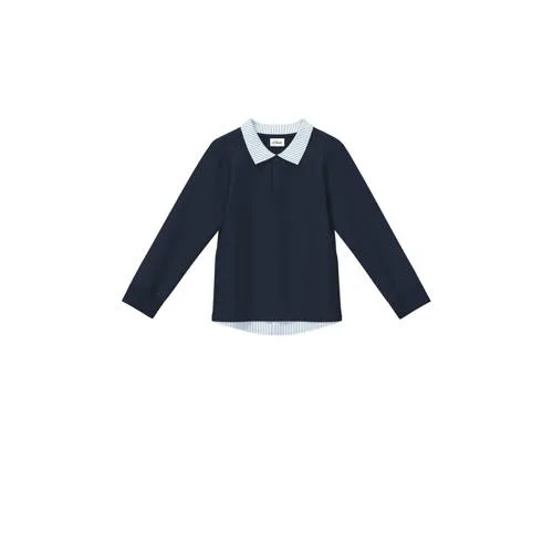 Deze zachte s.Oliver longsleeve voor jongens combineert het comfort van een T-shirt met de nette uitstraling van een overhemd. Ideaal voor feestelijke momenten waarbij een kind zich nog steeds vrij moet kunnen bewegen. De top heeft een ronde hals met een klassieke overhemdkraag en een korte knoopsluiting die zorgt voor een verzorgde look zonder ingewikkelde details.Feestelijke top met overhemdkraag Gemaakt van 100% katoen voor een zachte, soepele touch op de huid Combinatie van geweven kraag en jersey body voor een comfortabel draaggevoel Regular fit die genoeg ruimte laat om te spelen en te bewegen Lange mouwen met ribboord, waardoor de mouwen mooi op hun plek blijven Borduursel als subtiel detail voor een nette, verzorgde uitstraling Zijsplitten aan de onderkant voor extra bewegingsvrijheid en een mooie pasvorm over de broek Effen kleur, makkelijk te combineren met een nette broek of een jeansVoor feestelijke momenten en nette outfitsDeze longsleeve is een geschikte keuze voor feestjes, etentjes of schoolfoto’s. De top oogt gekleed door de overhemdkraag en knoopsluiting, terwijl de jersey stof en de ribboorden bij de mouwen zorgen voor een ontspannen gevoel, ook als de dag wat langer duurt.De stijl van s.Olivers.Oliver staat bekend om kleding met een praktische insteek. De ontwerpen zijn gemaakt voor dagelijks gebruik, met fijne materialen en doordachte details. Zo krijgt kinderkleding een moderne uitstraling, zonder dat dit ten koste gaat van comfort of kwaliteit.Een nette basic die elke feestelijke outfit een rustige en verzorgde uitstraling geeft.