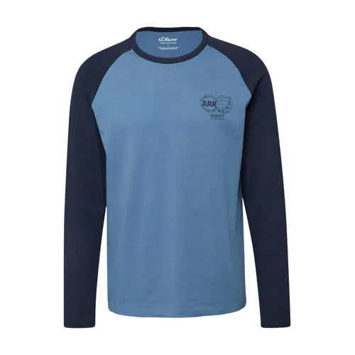 Voor een relaxte, dagelijkse look is deze s.Oliver heren longsleeve een praktische basic met iets extra's. Het shirt heeft de vorm van een T-shirt, maar dan met lange mouwen, zodat je net wat meer bedekking en warmte hebt. De blauwe kleur is rustig en gemakkelijk te combineren, terwijl de artwork print op de voorkant zorgt voor een moderne uitstraling. Gemaakt van 100% katoen voelt het materiaal zacht en ademend aan op de huid, geschikt voor alledaags draagcomfort.Praktische details die je elke dag waardeert Longsleeve model met lange mouwen voor extra warmte en comfort Raglanmouwen zorgen voor een sportieve look en veel bewegingsvrijheid bij de schouders Ronde hals, makkelijk te dragen onder een vest of jas Regular fit pasvorm, valt recht langs het lichaam zonder strak te zitten Gemaakt van 100% katoen voor een zachte, ademende touch Artwork print op de voorkant als grafisch detail Geen sluiting, simpel aan- en uittrekkenCasual outfit voor elke dagDit shirt past goed bij een jeans of chino en kan solo worden gedragen of onder een open overhemd of sweatvest. Geschikt voor werk, thuis of een ontspannen weekendmoment, het shirt biedt een solide basis in je garderobe.Betrouwbare stijl van s.Olivers.Oliver staat bekend om toegankelijke mode met een moderne, draagbare stijl. De collecties combineren actuele trends met comfortabele pasvormen en doordachte basics. Zo kies je een shirt met een tijdloze uitstraling en een pasvorm die geschikt is voor dagelijks gebruik.Een shirt dat gemakkelijk in verschillende dagelijkse outfits past.