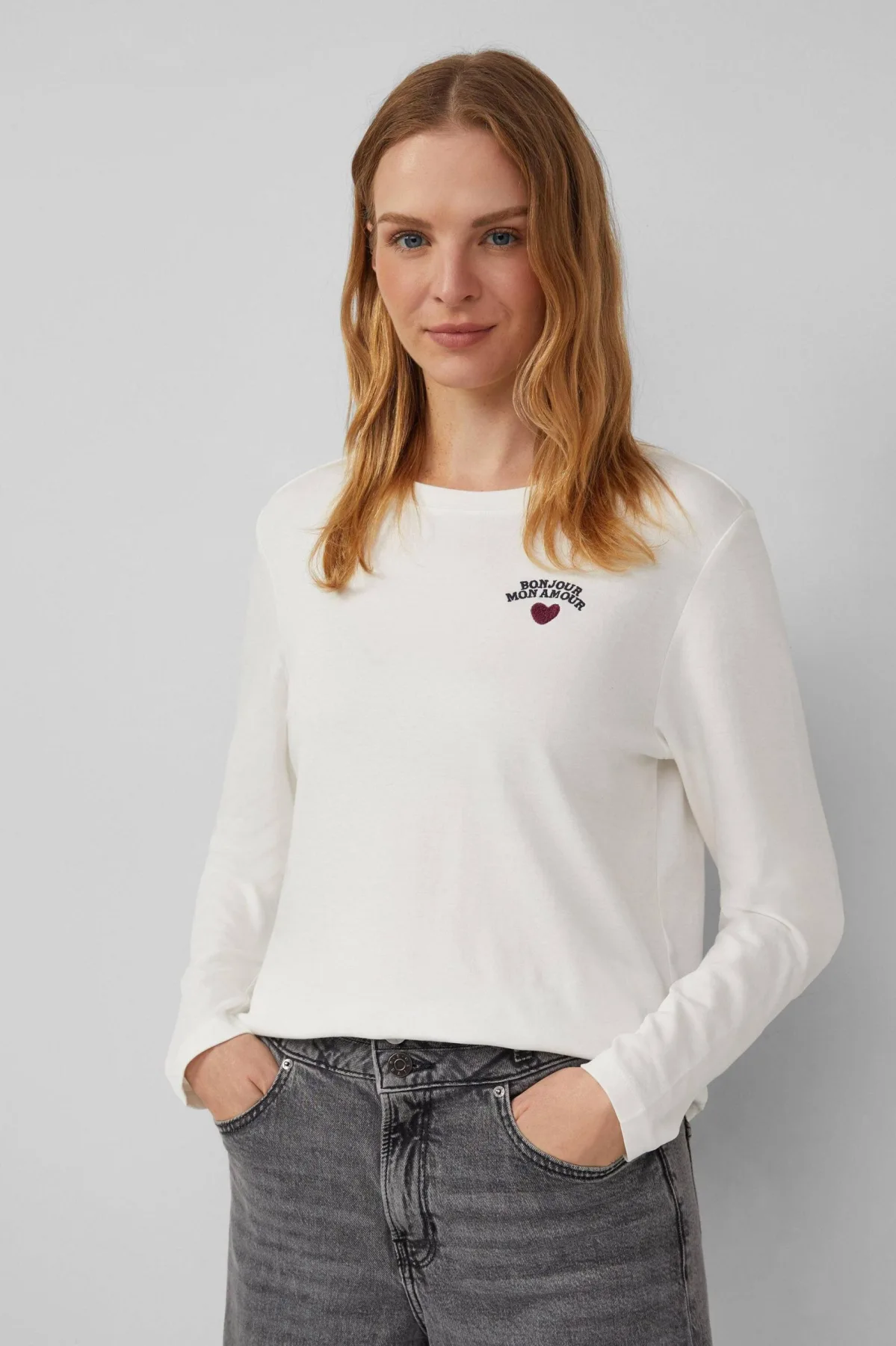 Design: Gevoerde zoom/rand, Geribbelde kraag; Materiaal: Jersey; Halstype: Ronde hals; Motief: Effen; Details: Borduursels; Extra's: Voelt zacht aan, Huidvriendelijk materiaal; Pasvorm: Normale pasvorm; Armlengte: Lange mouw; Lengte: Normale lengte