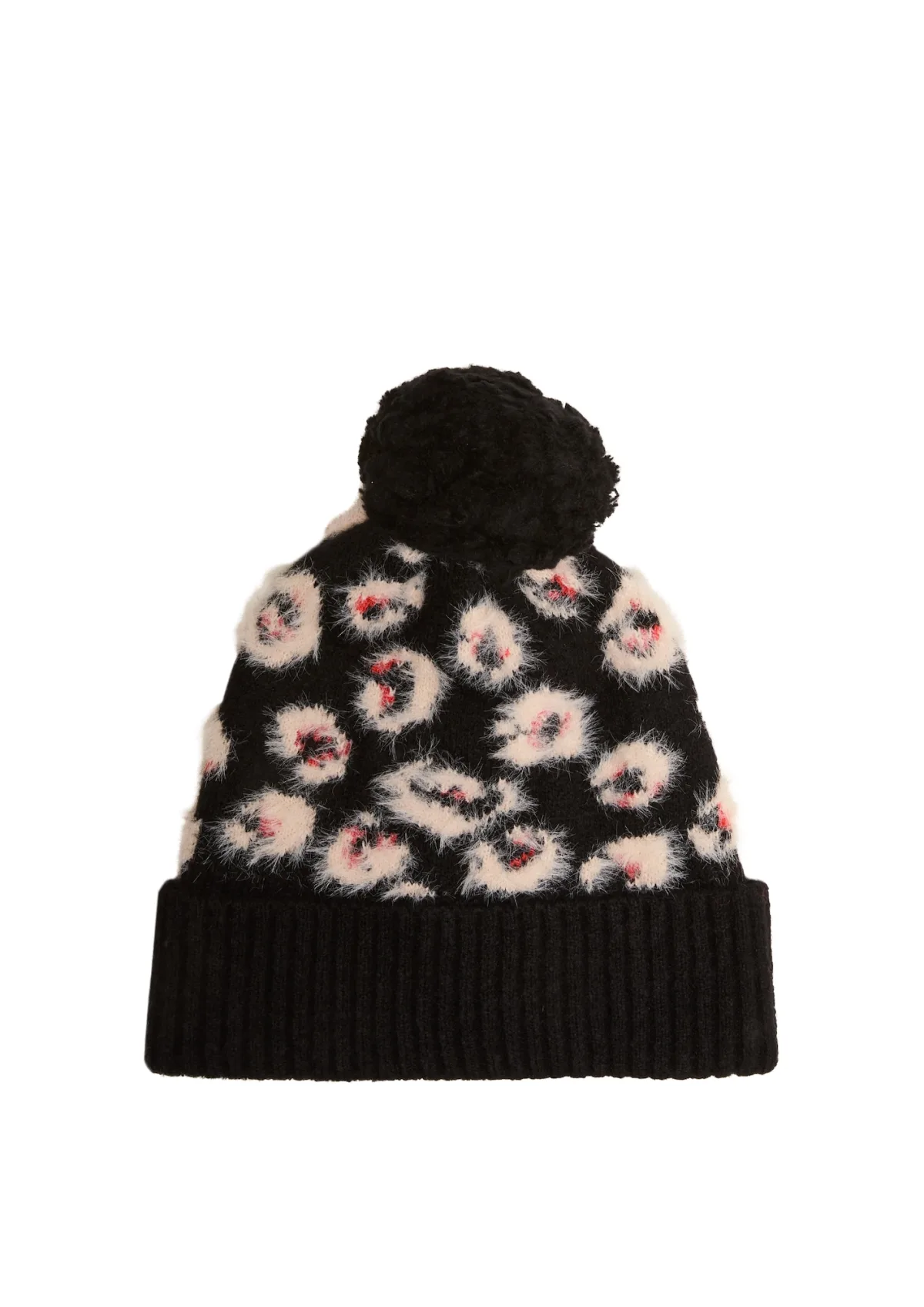 Design: Geribd ceintuurtje, Pompoms; Materiaal: Knitwear; Motief: Dierenprint; Type muts: Bobble muts; Extra's: All-over patroon, Voelt zacht aan