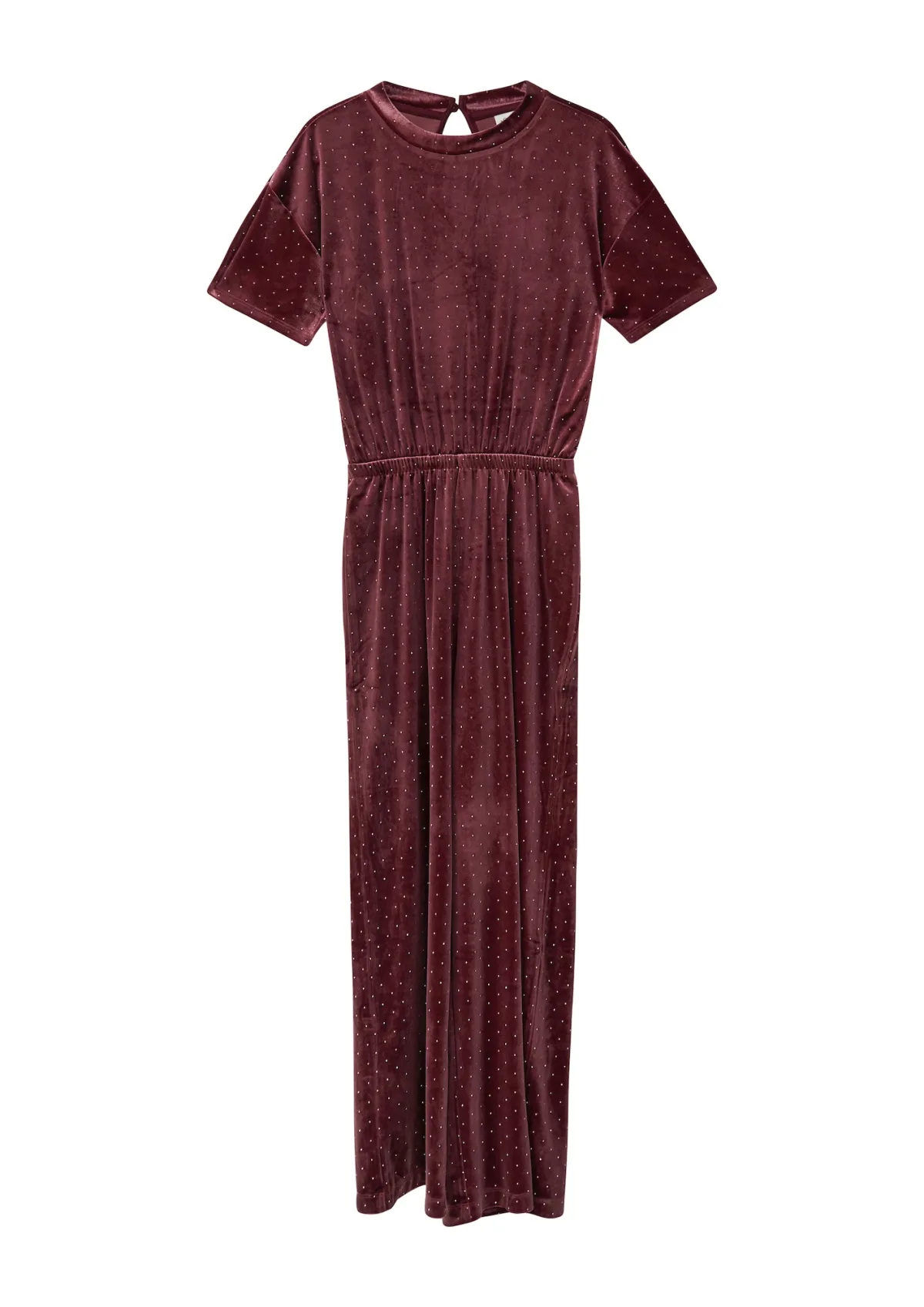 Design: Elastische taille/zoom; Materiaal: Fluweel/Nicky Velours; Halstype: Ronde hals; Motief: Effen; Extra's: Glitterend, All-over patroon; Lengte: Lang/maxi; Pasvorm: Normale pasvorm; Armlengte: Halve mouw