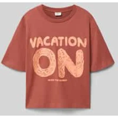 dames T-shirt van s.Oliver RED LABEL;look: effen kleuren;pasvorm: boxy fit;Applicatie: motiefprint;Hals: ronde hals;mouwvorm: korte mouw;materiaalverwerking: jersey;Materiaal: puur katoen