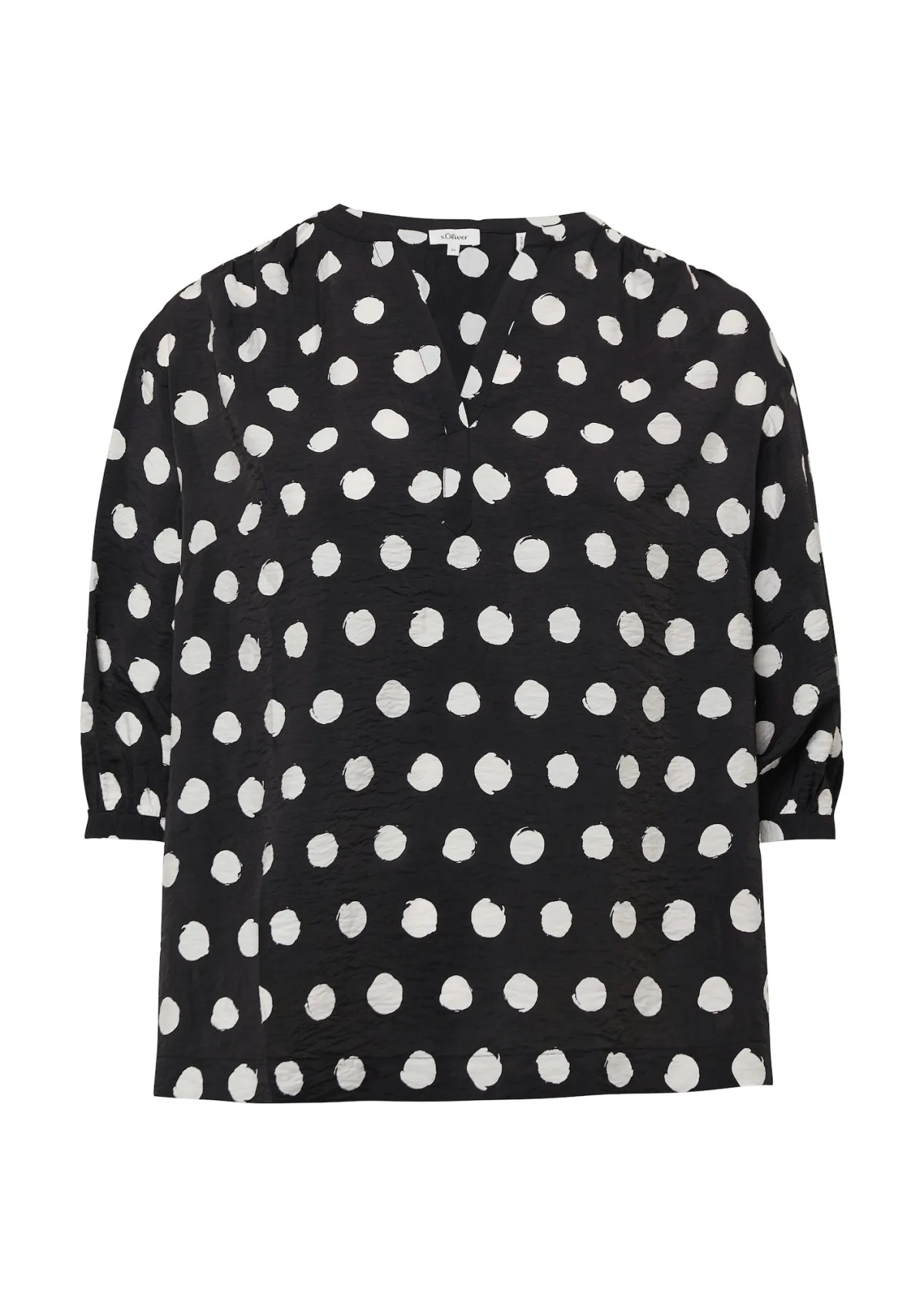Blouse type: Wijde blouse; Design: Gevoerde zoom/rand, Overcut schouder; Materiaal: Viscose; Motief: Gestippeld; Kraag: Tuniek kraag; Details: Gedrapeerd; Extra’s: All-over patroon, Gladde stof; Pasvorm: Losse pasvorm; Armlengte: Driekwart mouw; Lengte: Normale lengte