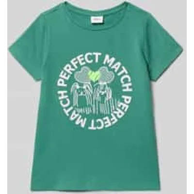 Kinderen T-shirt van s.Oliver RED LABEL;Look: effen;Pasvorm: Regular Fit;Applicatie: Glitterprint;Hals: Ronde hals;Mouwvorm: Kapmouwen;Materiaal: puur katoen