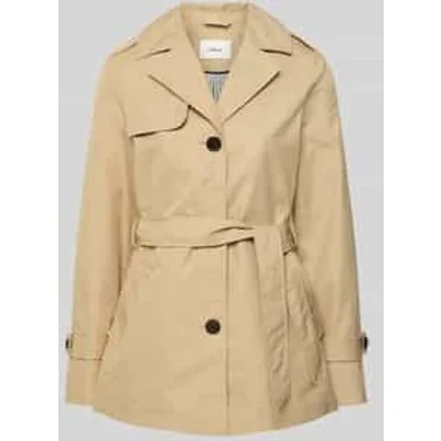 Dames Trenchcoat van s.Oliver RED LABEL;Look: effen;Pasvorm: Regular Fit;Kraagmodel: Reverskraag;Sluiting: enkele knoopsluiting, Tailleriem om te strikken;Lengte: Kort;Applicatie: Labelapplicatie;Details: Achterpas, Gun Flap, Schouder-trensje;Mouwvorm: lange mouw;Mouwafsluiting: pat;Functie: waterafstotend;Tassen: Binnenzak, zij-insteekzakken;Materiaalverwerking: Twill;Materiaal: Katoenmix