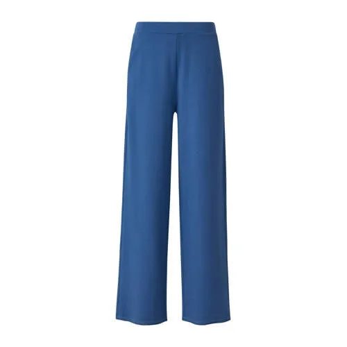 Deze luchtige s.Oliver damesbroek is een comfortabele basis voor ontspannen dagen. De broek heeft een high rise taille en een relaxed fit, waardoor er rondom de heupen en benen veel bewegingsruimte is. De wide leg pijpen vallen losjes langs het been en geven een moderne, casual uitstraling. Gemaakt van zachte sweatstof met modal en katoen voelt de broek prettig aan op de huid en is hij geschikt voor dagelijks gebruik.Comfortabele pasvorm voor elke dag High rise taille voor een comfortabel en omsluitend gevoel rond de heupen Relaxed fit met wide leg pijpen voor een losse, ontspannen look Elastische tailleband voor gemakkelijk aan- en uittrekken en een flexibele pasvorm Luchtige sweatstof die zacht aanvoelt en prettig draagt, ook op warme dagen Lange pijpen met open zoom voor een casual en recht silhouet Effen blauwe kleur die eenvoudig te combineren is met verschillende tops en schoenen Materiaal: 47% modal, 47% katoen en 6% elastaan voor soepelheid en lichte stretchOntspannen outfits met deze broekDeze casual broek is geschikt voor ontspannen momenten thuis, een rustige dag in de stad of onderweg. De sweatstof in combinatie met de rustige kleur zorgt voor een verzorgde look, of je nu een T-shirt, top of trui draagt. De relaxed fit en elastische band zorgen ervoor dat de broek prettig blijft zitten, of je nu veel beweegt of juist vooral wilt relaxen.s.Oliver als vertrouwde keuzes.Oliver staat voor toegankelijke mode met oog voor pasvorm en draaggemak. De collectie richt zich op kleding die goed voelt en lang mooi blijft. Met deze broek kies je voor een betrouwbare basic met een moderne snit en een zachte stofkwaliteit.Een comfortabele, luchtige broek voor dagen dat gemak vooropstaat.