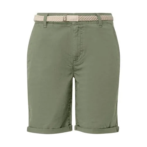 Deze groene dames chino korte broek van s.Oliver is een basic voor warme dagen. De bermuda lengte met straight leg geeft een ontspannen uitstraling, terwijl de mid rise taille en regular fit zorgen voor een nette pasvorm die niet te strak en niet te wijd is. De effen kleur maakt combineren eenvoudig, van een simpel T-shirt tot een luchtige blouse.Details die je elke dag draagt Gemaakt van katoen-stretch met 98% katoen en 2% elastine voor een soepele, licht meebewegende stof Mid rise waist met regular fit voor comfortabele dagelijkse draagmomenten Bermuda lengte en straight leg voor een rustige uitstraling Rits- en knoopsluiting met riemlussen, handig te stylen met je favoriete ceintuur Steekzakken aan de zijkant, sierzakken en zakken achter voor een verzorgd geheel Omslagdetail aan de pijpen voor een subtiel afgewerkte zoom Garment dye wassing voor een groentint met een casual uitstralingGeschikt voor al je zomerse plannenDeze chino short komt uit de 'Daily' collectie en past goed in je zomergarderobe. Geschikt voor een dagje stad, een etentje op het terras of een vakantie. Draag de korte broek met sneakers en een top voor een ontspannen look of combineer met sandalen en een blouse voor een meer verzorgde stijl.s.Oliver als basis in je garderobes.Oliver staat bekend om draagbare mode met een toegankelijke stijl. De focus ligt op comfortabele pasvormen, fijne materialen en kleding die je gemakkelijk in het dagelijks leven draagt. Zo kies je voor een korte broek die geschikt is voor dagelijks gebruik.Een zomers item dat je eenvoudig combineert in verschillende outfits.