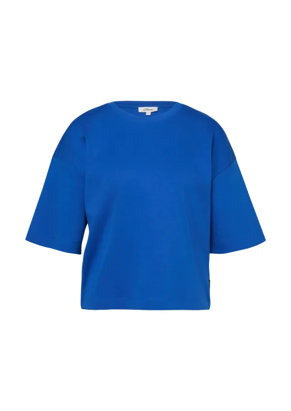 dames T-shirt van s.Oliver RED LABEL;look: effen kleuren;Pasvorm: oversized;applicatie: logo-applicatie;Hals: ronde hals;mouwvorm: korte mouw;materiaalverwerking: jersey;Materiaal: puur katoen
