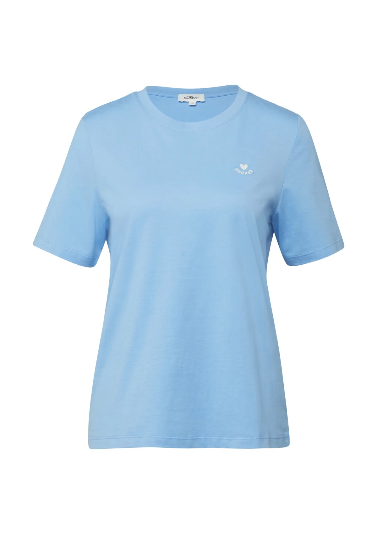 Dames T-shirt van s.Oliver RED LABEL;Look: effen;Pasvorm: Regular Fit;Applicatie: Borduursel;Hals: Ronde hals;Mouwvorm: korte mouw;Materiaal: puur katoen