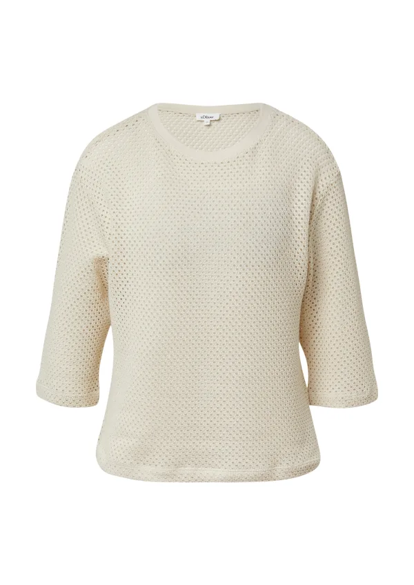 Design: Gevoerde zoom/rand, Rechte zoom, Overcut schouder; Materiaal: Jersey; Halstype: Ronde hals; Motief: Effen; Details: Mesh; Extra’s: Licht transparant, Voelt zacht aan; Pasvorm: Losse pasvorm; Armlengte: Driekwart mouw; Lengte: Normale lengte