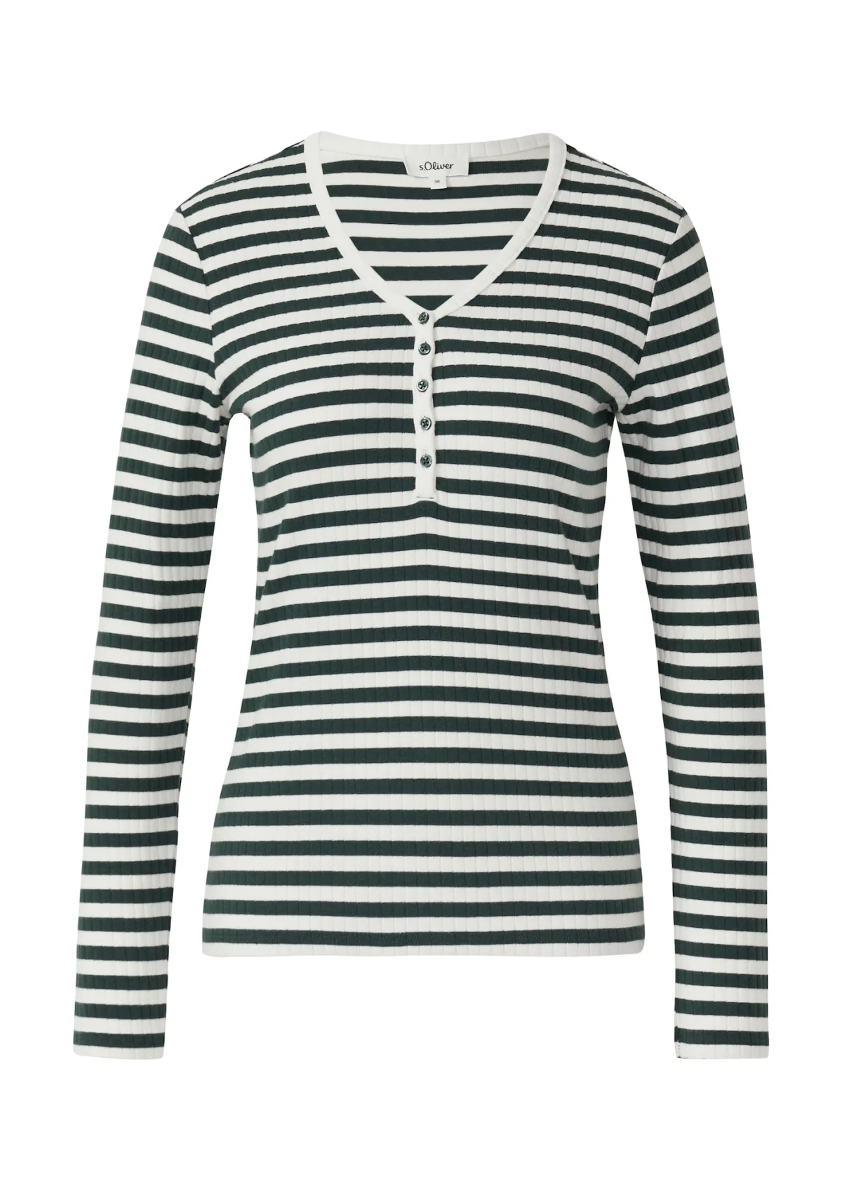 Design: Gevoerde zoom/rand, Geribbeld gebreid; Type sluiting: Knoopsluiting; Materiaal: Jersey; Halstype: Henley hals; Motief: Gestreept; Extra's: Label patch/label flag, Met textuur, Voelt zacht aan; Pasvorm: Normale pasvorm; Armlengte: Lange mouw; Lengte: Normale lengte