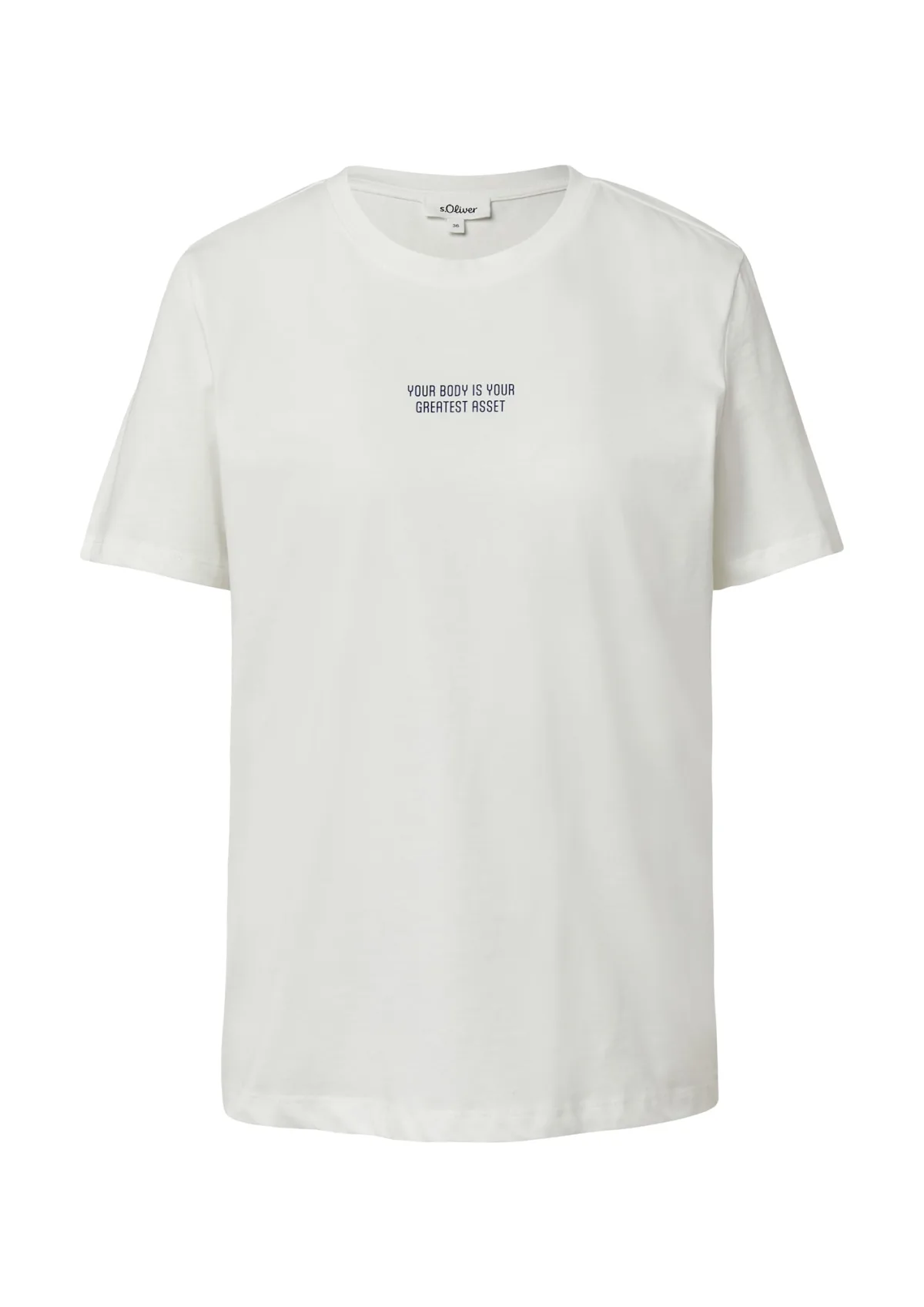 Design: Gevoerde zoom/rand; Materiaal: Jersey; Halstype: Ronde hals; Motief: Tekst print; Extra's: Op staal naden; Pasvorm: Normale pasvorm; Armlengte: Kwartmouw; Lengte: Normale lengte