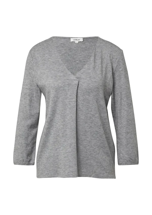 Design: Gevoerde zoom/rand, Rechte zoom, Diepe snit/decolleté; Materiaal: Jersey; Halstype: V-hals; Motief: Mélange; Details: Plooien; Extra's: Voelt zacht aan, Huidvriendelijk materiaal; Pasvorm: Losse pasvorm; Armlengte: Driekwart mouw; Lengte: Normale lengte