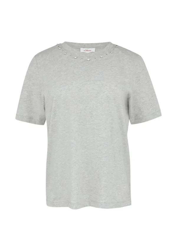 Materiaal: Jersey; Halstype: Ronde hals; Motief: Effen; Details: Sierstenen; Extra's: Met halfedelstenen; Pasvorm: Normale pasvorm; Armlengte: Kwartmouw; Lengte: Normale lengte