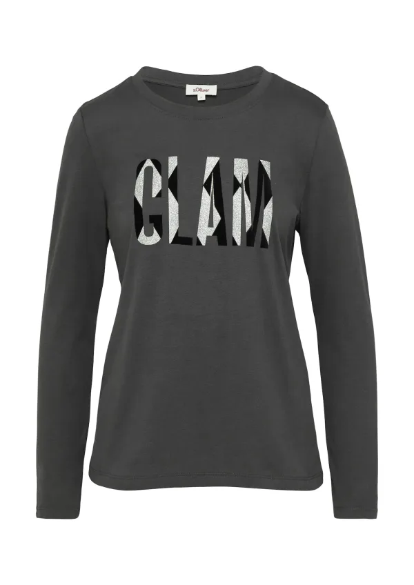 Design: Gevoerde zoom/rand, Geribbelde kraag; Materiaal: Jersey; Halstype: Ronde hals; Motief: Tekst print; Details: Sierstenen; Extra's: Op staal naden; Pasvorm: Normale pasvorm; Armlengte: Lange mouw; Lengte: Normale lengte