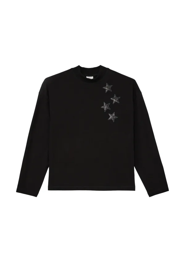Design: Gevoerde zoom/rand, Rechte zoom; Materiaal: Jersey; Halstype: Ronde hals; Motief: Motiefprint; Details: Pailletten; Extra's: Op staal naden, Voelt zacht aan; Pasvorm: Losse pasvorm; Armlengte: Lange mouw; Lengte: Normale lengte