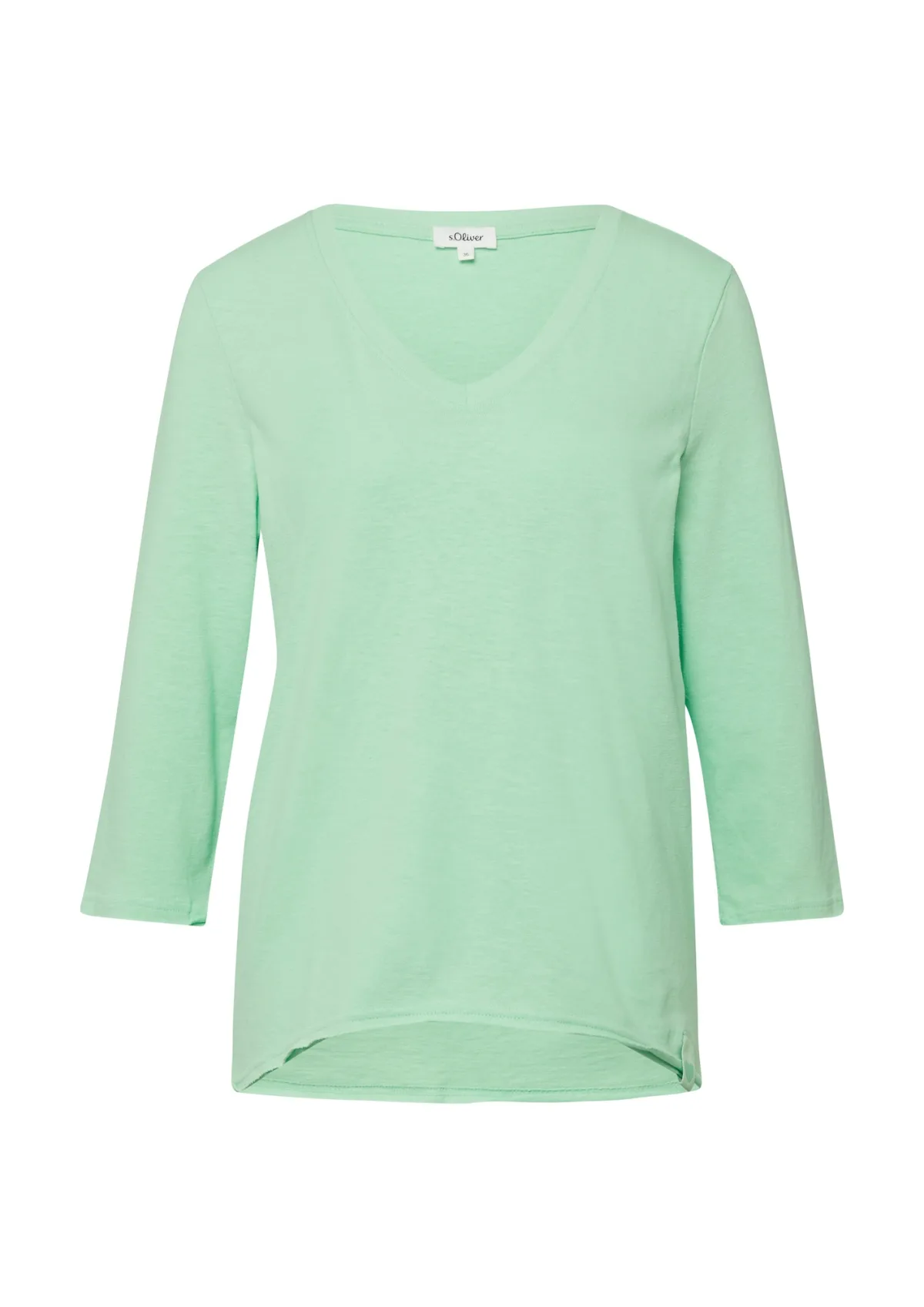 Design: Gevoerde zoom/rand; Materiaal: Jersey; Halstype: V-hals; Motief: Mélange; Extra's: Op staal naden; Pasvorm: Normale pasvorm; Armlengte: Driekwart mouw; Lengte: Normale lengte