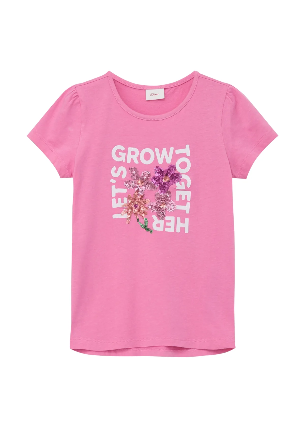 Materiaal: Jersey; Halstype: Ronde hals; Motief: Tekst print; Details: Pailletten, Gedrapeerd; Pasvorm: Normale pasvorm; Armlengte: Kwartmouw; Lengte: Normale lengte