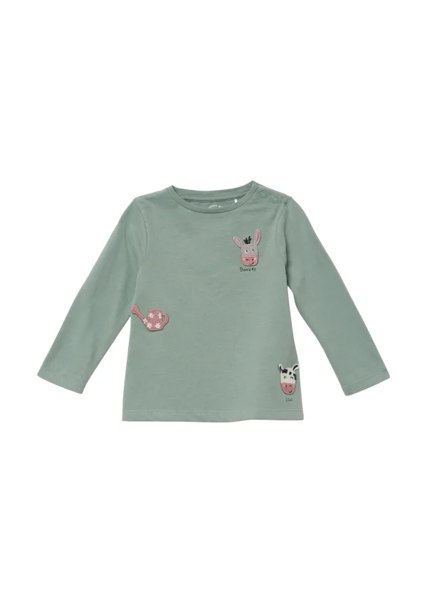 Design: Gevoerde zoom/rand, Geribbelde kraag; Type sluiting: Drukknoop; Materiaal: Jersey; Halstype: Ronde hals; Motief: Motiefprint; Details: Patches; Extra's: Applicaties, Voelt zacht aan; Pasvorm: Normale pasvorm; Armlengte: Lange mouw; Lengte: Normale lengte