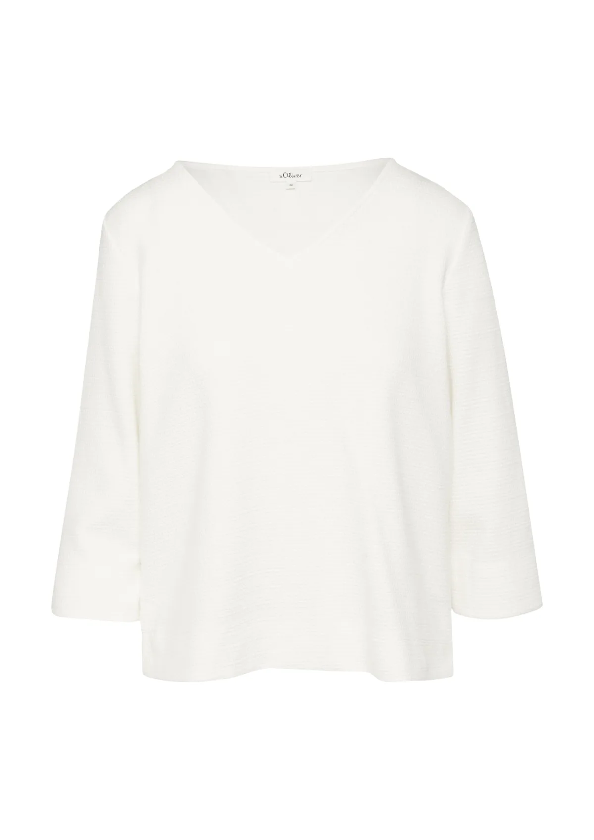 Design: Gevoerde zoom/rand, Rechte zoom; Materiaal: Jersey; Halstype: V-hals; Motief: Effen; Extra's: Met textuur, Voelt zacht aan; Pasvorm: Normale pasvorm; Armlengte: Driekwart mouw; Lengte: Normale lengte