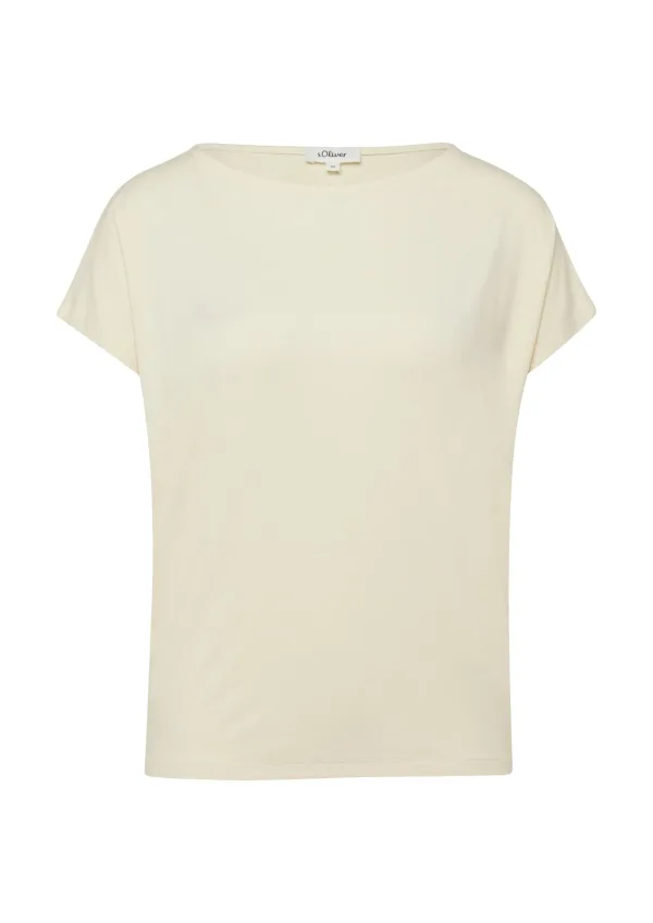 Dames T-shirt van s.Oliver RED LABEL;look: effen;Pasvorm: loose fit;Details: verlaagde schouders;hals: boothals;mouwvorm: korte mouw;materiaalverwerking: jersey;Materiaal: viscosemix