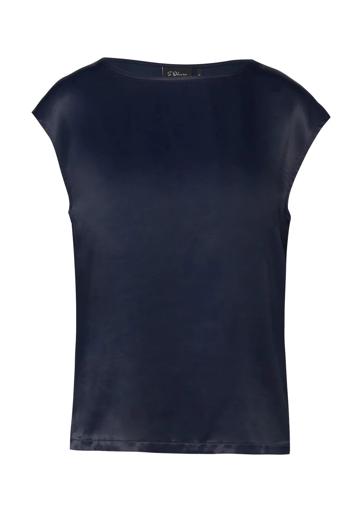 Dames blouseshirt van s.Oliver BLACK LABEL;look: effen;Pasvorm: relaxed fit;Hals: ronde hals;mouwvorm: zonder mouwen;materiaalverwerking: satijn;Materiaal: pure viscose, viscosemix