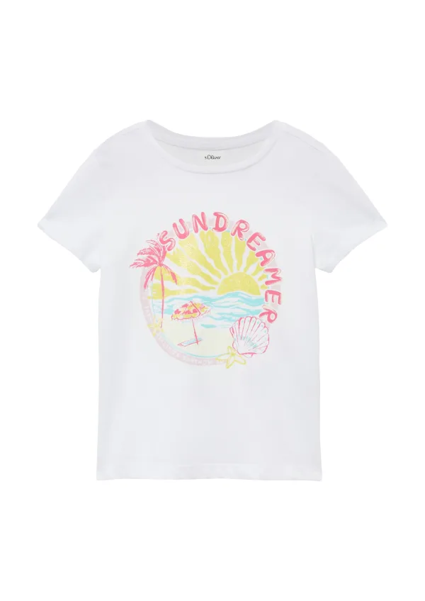 Design: Gevoerde zoom/rand, Nektape; Materiaal: Jersey; Halstype: Ronde hals; Motief: Motiefprint; Extra's: Voelt zacht aan, Huidvriendelijk materiaal; Pasvorm: Normale pasvorm; Armlengte: Kwartmouw; Lengte: Normale lengte