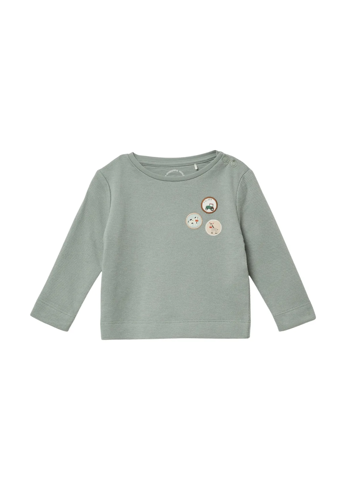 Design: Gevoerde zoom/rand, Geribd ceintuurtje; Type sluiting: Drukknoop; Materiaal: Jersey; Halstype: Ronde hals; Details: Borduursels; Extra's: Applicaties, Op staal naden, Piqué, Wafelstructuur; Pasvorm: Normale pasvorm; Armlengte: Lange mouw; Lengte: Normale lengte