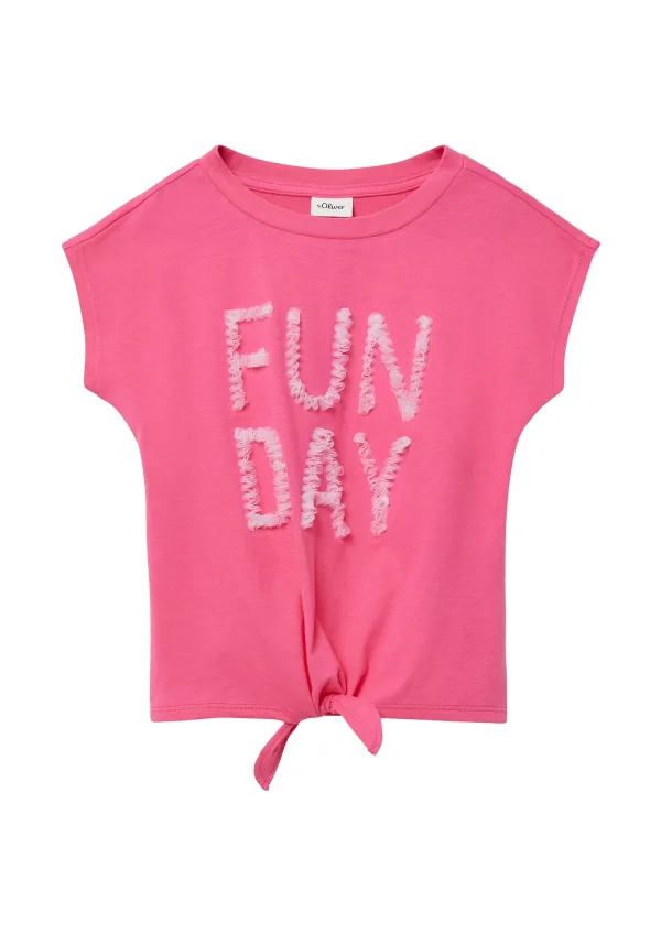 Design: Gesneden mouw, Om te knopen/binden, Nektape; Materiaal: Jersey; Halstype: Ronde hals; Motief: Motiefprint; Extra's: Applicaties, Op staal naden, Voelt zacht aan; Pasvorm: Normale pasvorm; Armlengte: Kwartmouw; Lengte: Normale lengte