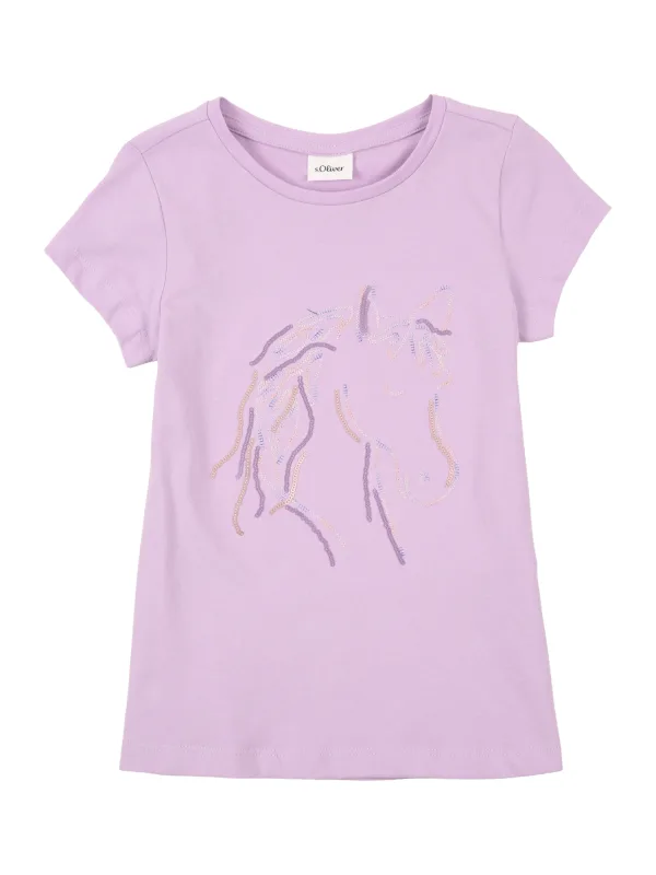 Design: Gevoerde zoom/rand, Rechte zoom; Materiaal: Jersey; Halstype: Ronde hals; Motief: Motiefprint; Details: Pailletten; Extra's: Op staal naden, Voelt zacht aan; Pasvorm: Normale pasvorm; Armlengte: Kwartmouw; Lengte: Normale lengte