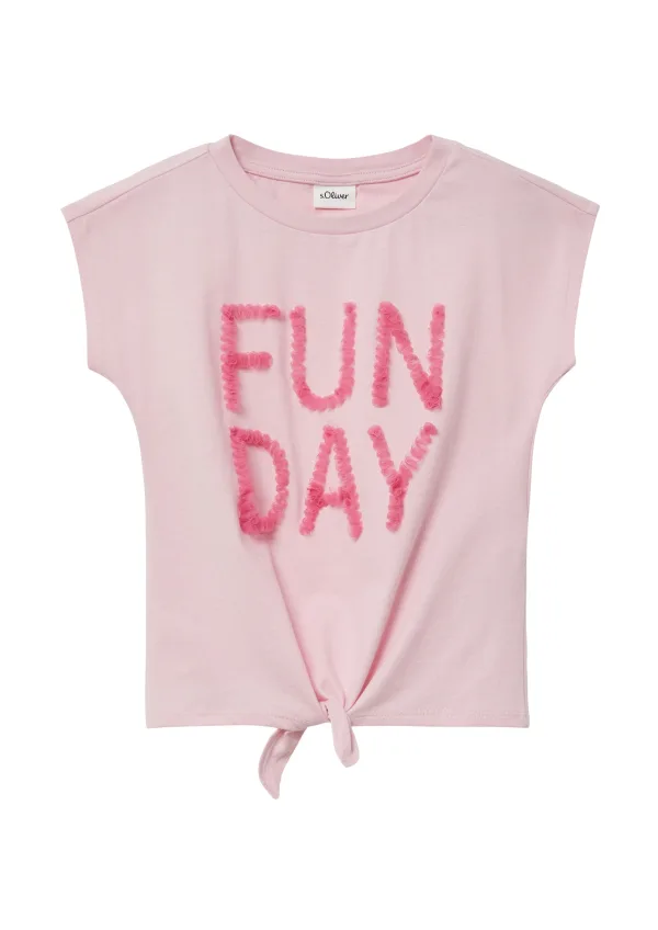 Design: Om te knopen/binden; Materiaal: Jersey; Halstype: Ronde hals; Motief: Tekst print; Extra's: Applicaties; Pasvorm: Normale pasvorm; Armlengte: Kwartmouw; Lengte: Normale lengte