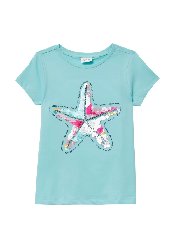 Design: Geribbelde kraag; Materiaal: Jersey; Halstype: Ronde hals; Motief: Motiefprint; Details: Pailletten; Extra's: Voelt zacht aan; Pasvorm: Normale pasvorm; Armlengte: Kwartmouw; Lengte: Normale lengte