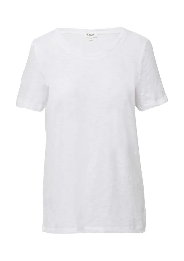 Design: Gevoerde zoom/rand, Recht model; Materiaal: Jersey; Halstype: Ronde hals; Motief: Effen; Extra’s: Slubstructuur, Op staal naden, Voelt zacht aan; Pasvorm: Normale pasvorm; Armlengte: Kwartmouw; Lengte: Normale lengte