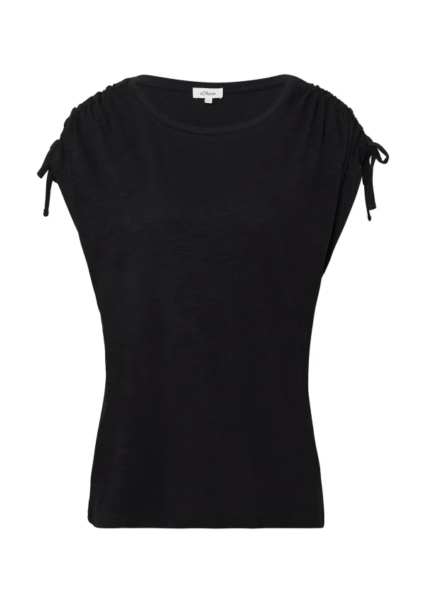 Design: Gevoerde zoom/rand; Materiaal: Jersey; Halstype: Ronde hals; Motief: Mélange; Details: Gedrapeerd; Extra's: Slubstructuur; Pasvorm: Losse pasvorm; Armlengte: Kwartmouw; Lengte: Normale lengte