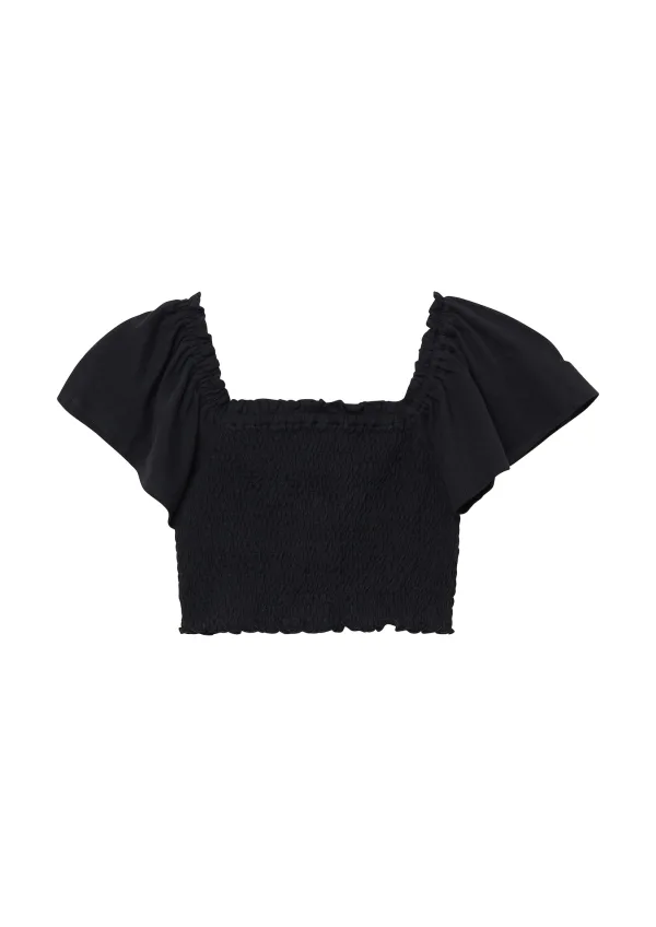Design: Elastische inzetstukken; Materiaal: Jersey; Halstype: Carréhals; Motief: Effen; Details: Gedrapeerd; Extra's: Voelt zacht aan; Pasvorm: Aansluitende pasvorm; Armlengte: Kwartmouw; Lengte: Normale lengte