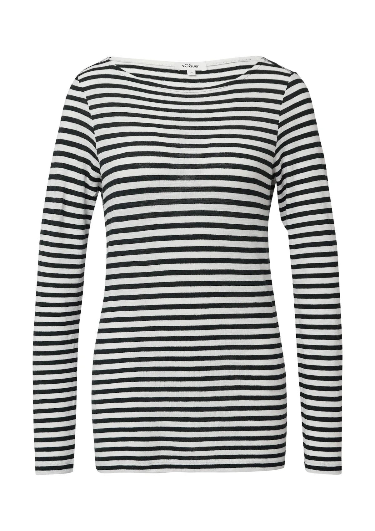 Design: Gevoerde zoom/rand; Materiaal: Jersey; Halstype: Boothals; Motief: Gestreept; Extra's: Voelt zacht aan; Pasvorm: Slanke pasvorm; Armlengte: Lange mouw; Lengte: Normale lengte