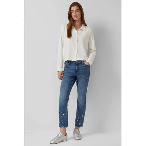 s.Oliver slim fit jeans met parels medium blue denim