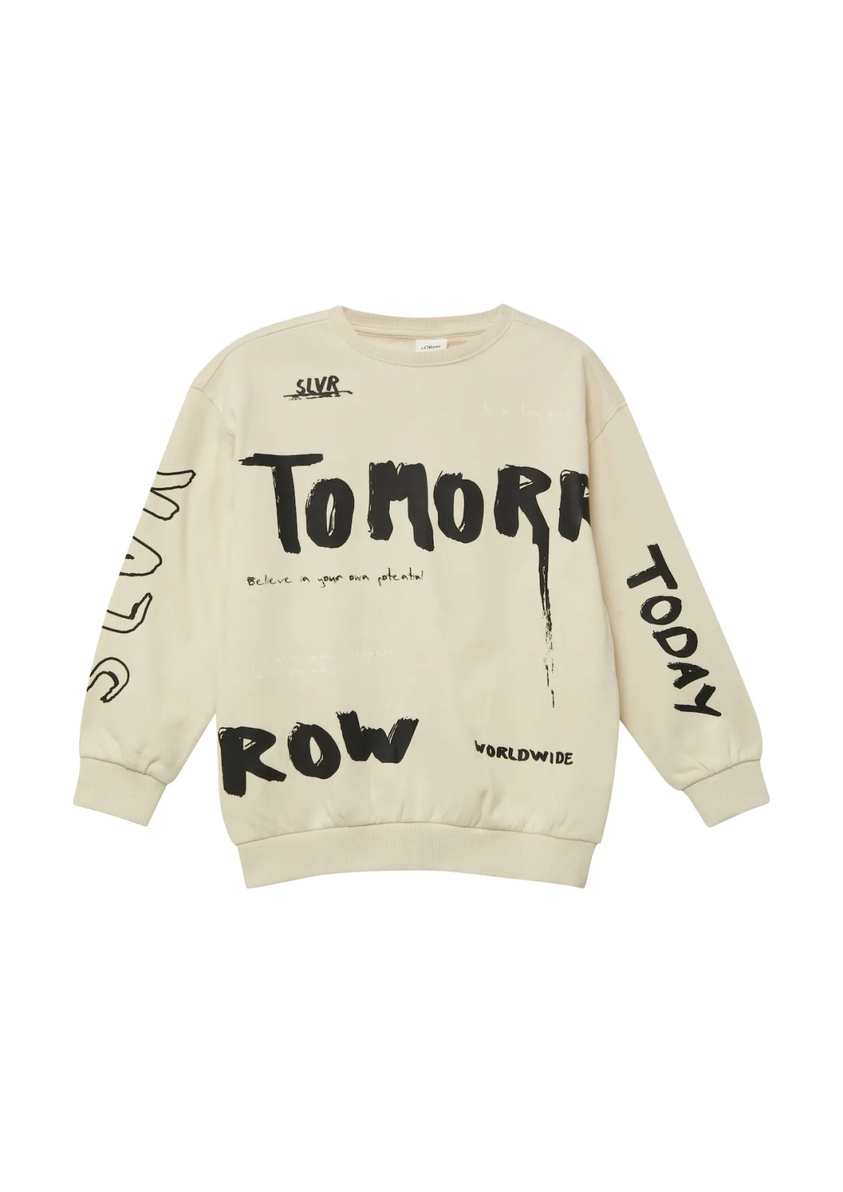 Design: Gevoerde zoom/rand; Materiaal: Sweatstof; Halstype: Ronde hals; Motief: Tekst print; Extra's: All-over patroon, Oplichtende stof; Pasvorm: Normale pasvorm; Armlengte: Lange mouw