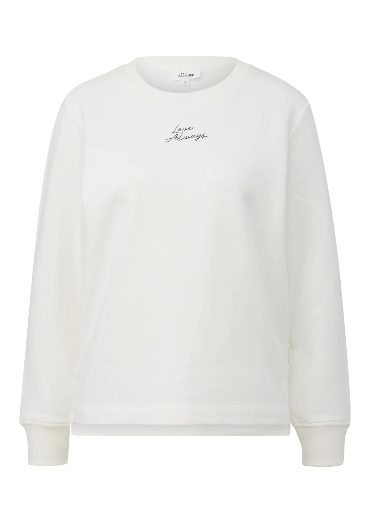 Design: Zijdelingse inkepingen; Materiaal: Sweatstof; Halstype: Ronde hals; Motief: Tekst print; Extra's: Voelt zacht aan; Pasvorm: Normale pasvorm; Armlengte: Lange mouw; Lengte: Normale lengte
