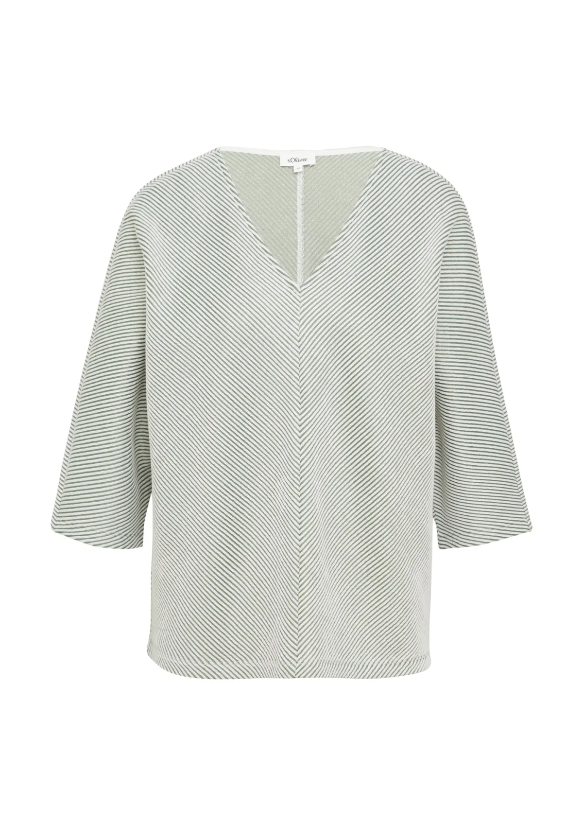 Design: Gevoerde zoom/rand, Rechte zoom, Recht model, Deelnaden; Materiaal: Jersey; Halstype: V-hals; Motief: Gestreept; Extra's: Op staal naden; Pasvorm: Losse pasvorm; Armlengte: Driekwart mouw; Lengte: Normale lengte