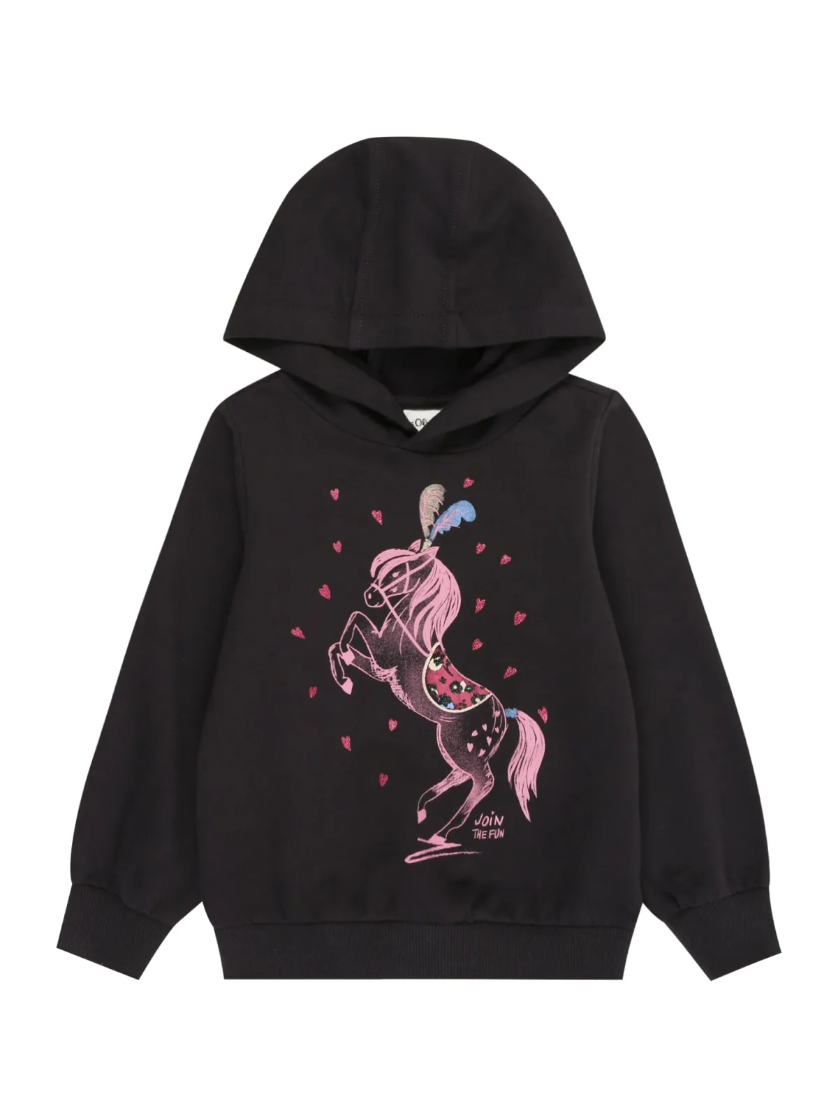 Design: Rechte zoom, Geribd ceintuurtje; Materiaal: Sweatstof; Halstype: Capuchon; Motief: Motiefprint; Extra's: Glitterend, Voelt zacht aan; Pasvorm: Normale pasvorm; Armlengte: Lange mouw; Lengte: Normale lengte