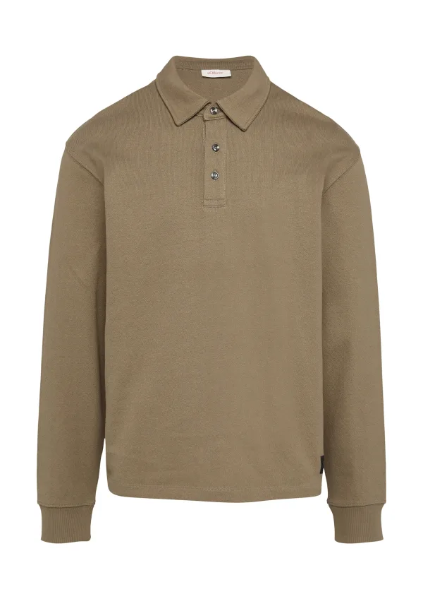 Design: Gevoerde zoom/rand; Type sluiting: Knoopsluiting; Materiaal: Sweatstof; Halstype: Polokraag; Motief: Effen; Extra's: Label patch/label flag; Pasvorm: Losse pasvorm; Armlengte: Lange mouw