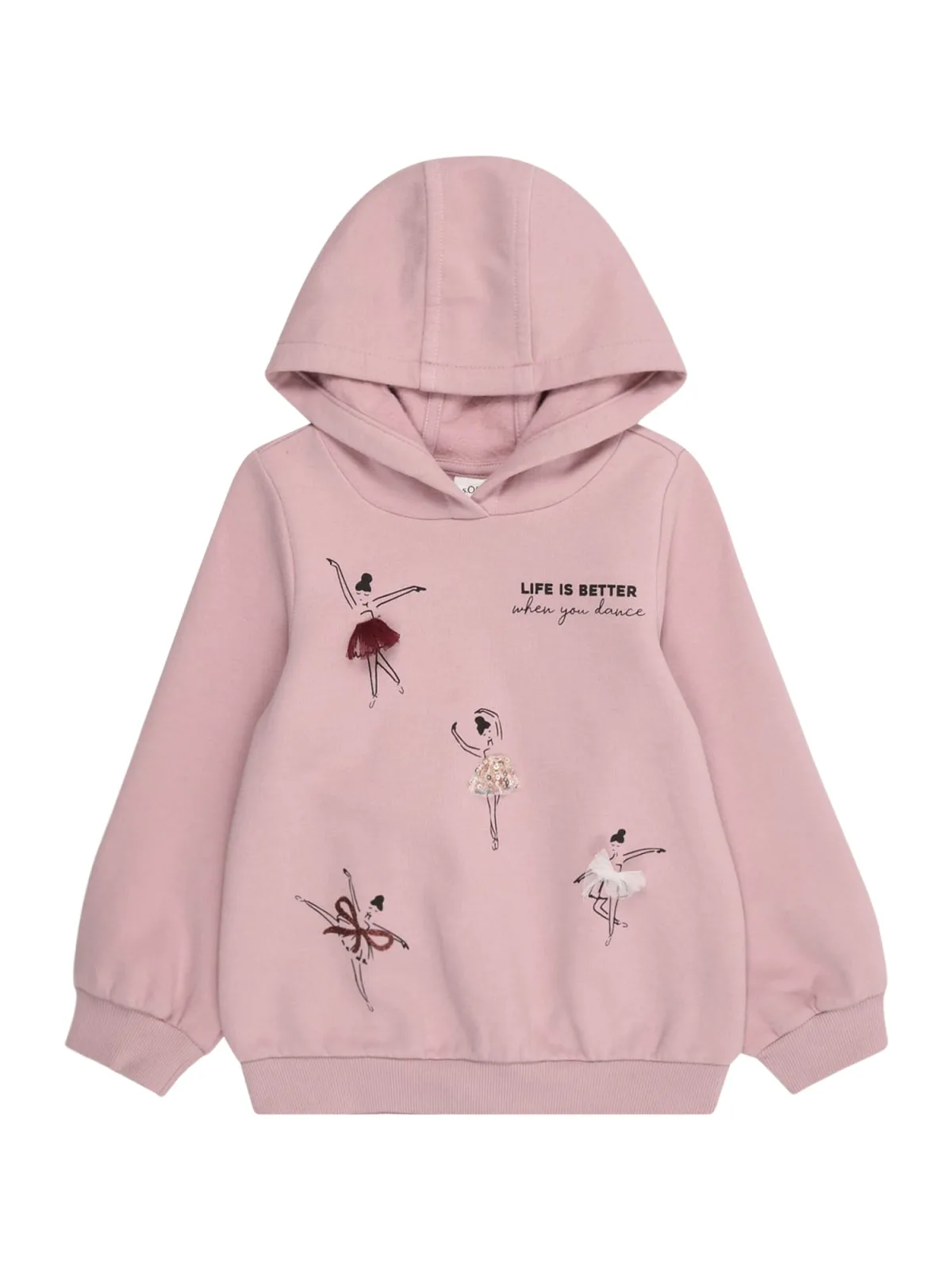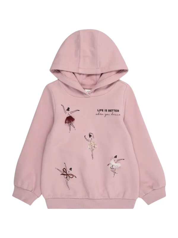 Design: Geribd ceintuurtje, Nektape; Type sluiting: Slip; Materiaal: Sweatstof; Halstype: Capuchon; Motief: Motiefprint; Details: Pailletten; Extra's: Applicaties, Voelt zacht aan; Pasvorm: Normale pasvorm; Armlengte: Lange mouw; Lengte: Normale lengte