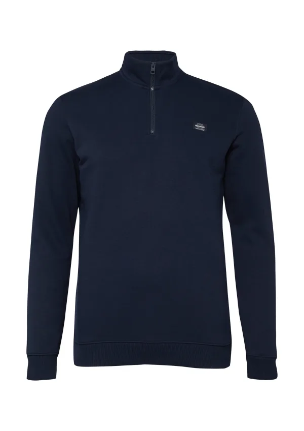 Design: Geribd ceintuurtje, Staande kraag, Halve rits; Type sluiting: Ritssluiting; Materiaal: Sweatstof; Halstype: Schipperskraag; Motief: Effen; Extra’s: Label patch/label flag, Op staal naden; Pasvorm: Normale pasvorm; Armlengte: Lange mouw