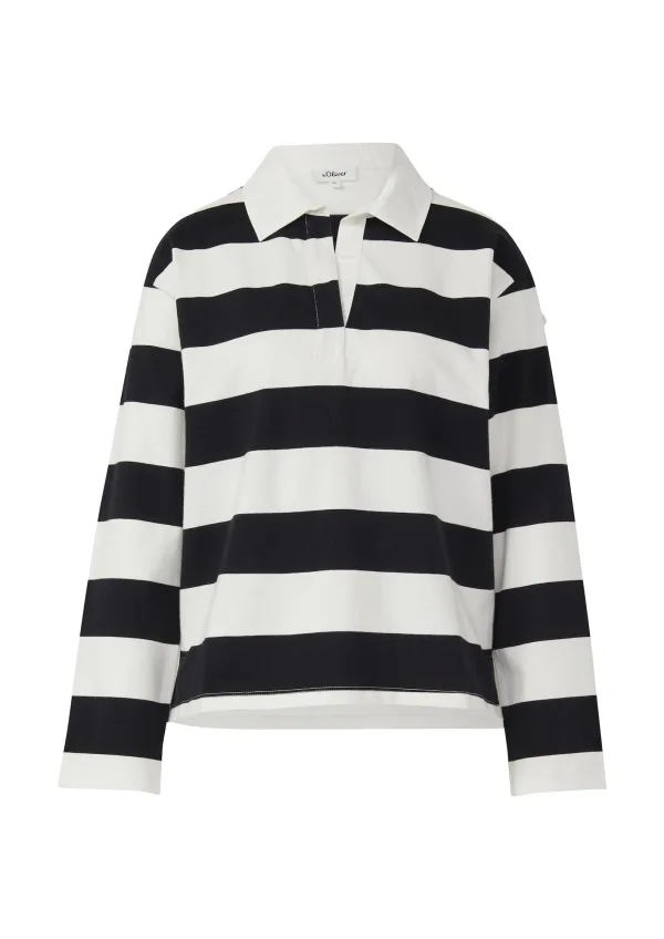 Design: Gevoerde zoom/rand, Overcut schouder; Type sluiting: Knoopsluiting; Materiaal: Sweatstof; Halstype: Polokraag; Motief: Gestreept; Extra’s: All-over patroon; Pasvorm: Losse pasvorm; Armlengte: Lange mouw; Lengte: Normale lengte