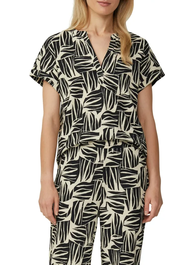 Blouse type: Wijde blouse; Design: Gevoerde zoom/rand, Geribd ceintuurtje; Materiaal: Jersey; Halstype: V-hals; Kraag: Tuniek kraag; Extra's: All-over patroon; Pasvorm: Normale pasvorm; Armlengte: Kwartmouw; Lengte: Normale lengte