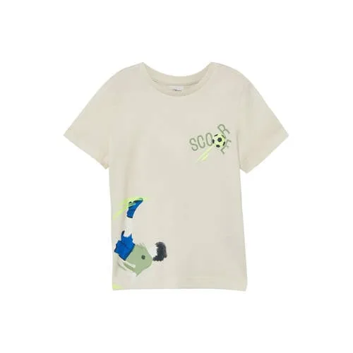 Voor elke actieve dag is dit s.Oliver jongens T-shirt een praktische basic in de kast. De ecru kleur is rustig en makkelijk te combineren, terwijl de print op de voorkant zorgt voor een speelse uitstraling. Dankzij de regular fit en de zachte jersey voelt het T-shirt comfortabel aan op de huid, ideaal voor peuters, kleuters en schoolkinderen.Comfortabele basic met stoere print Gemaakt van 100% katoen, dat zacht aanvoelt en prettig draagt Zachte jersey stof die soepel meebeweegt tijdens het spelen Regular fit voor een comfortabele pasvorm met genoeg bewegingsvrijheid Ronde hals met geribde rand die mooi in vorm blijft Korte mouwen, ideaal voor dagelijks gebruik in het voorjaar en de zomer Print op de voorkant voor een speels en eigentijds accent Ecru kleur die makkelijk combineert met jeans, shorts of joggingbroekenKlaar voor school, spelen en logeerpartijtjesOf het nu gaat om een dag op school, buitenspelen met vriendjes of een logeerpartij, dit T-shirt past eenvoudig in de dagelijkse kledingroutine. Door de toegankelijke kleur en comfortabele pasvorm is het snel een favoriet bovenstuk.s.Oliver: dagelijkse mode voor kidss.Oliver staat bekend om kleding die goed aansluit op het dagelijks leven van kinderen. De focus ligt op draaggemak, fijne materialen en moderne details. Zo combineert dit T-shirt een zachte kwaliteit met een herkenbare stijl, waar je kind de hele dag onbezorgd in kan spelen en bewegen.Een fijne basic die elke dag weer uit de kast gepakt kan worden.