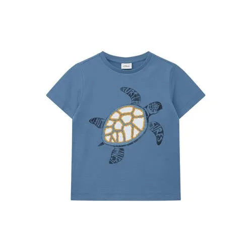 Dit blauwe jongens T-shirt van s.Oliver is een praktische basic met een speelse twist. De zachte jersey van 100% katoen voelt comfortabel op de huid, terwijl de omkeerbare pailletten op de voorkant direct de aandacht trekken. Ideaal voor peuters, kleuters en schoolkinderen die graag met hun outfit spelen.Comfort en speels detail Gemaakt van 100% katoen voor een zachte en ademende touch Zachte jersey stof die soepel meebeweegt tijdens het spelen Omkeerbare pailletten op de voorkant voor een speels effect Blauwe kleur die makkelijk combineert met jeans, shorts of joggers Regular fit voor een comfortabele, niet te strakke pasvorm Ronde hals met geribde rand die mooi in vorm blijft Korte mouwen, ideaal voor schooldagen en vrije tijd Geen zakken voor een rustige en praktische lookVoor elke drukke kinderdagDit T-shirt past goed in de dagelijkse garderobe. De print met pailletten geeft een simpele outfit direct extra uitstraling. Handig voor naar school of een dagje weg, gecombineerd met een vest of hoodie als het frisser is.s.Oliver voor moderne kidss.Oliver staat voor eigentijdse kinderkleding die goed aansluit bij het dagelijks leven. De ontwerpen zijn afgestemd op actief gebruik, met aandacht voor draagcomfort en een herkenbare stijl. Zo kies je voor kleding waarin kinderen zich de hele dag vrij kunnen bewegen.Een praktische basis voor elke dag, met een opvallend detail waar kinderen graag mee spelen.
