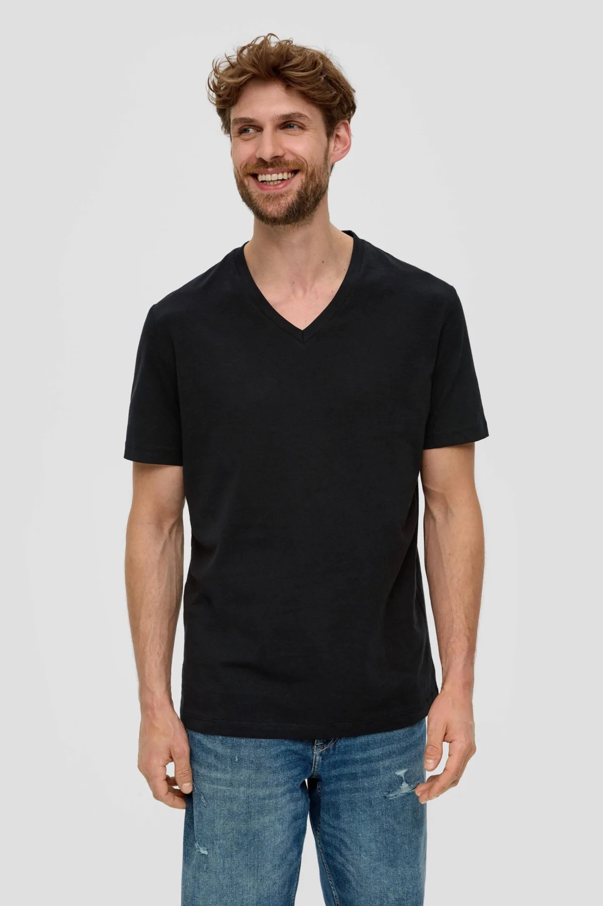 Set van drie T-shirts van s.Oliver met een regular fit en korte mouwen. Gemaakt van 100% katoen met een V-hals. Je draagt dit T-shirt makkelijk bij elke outfit.